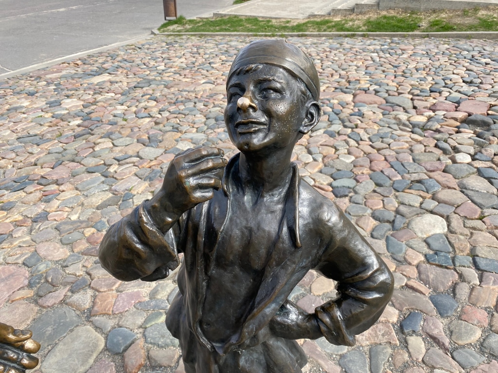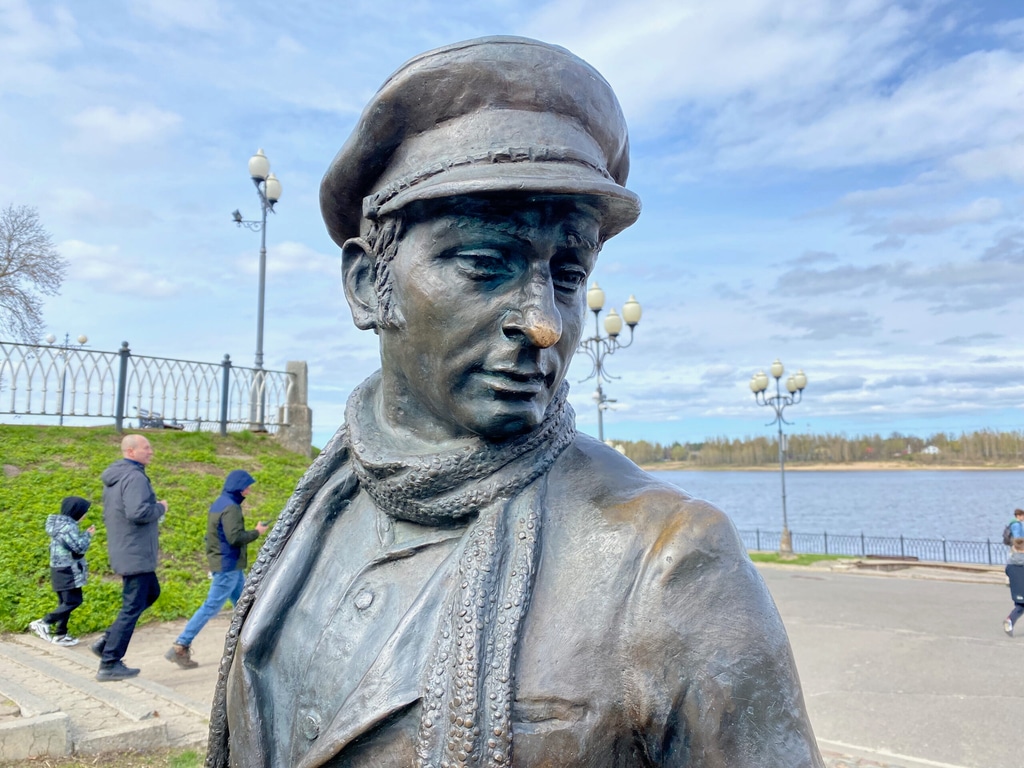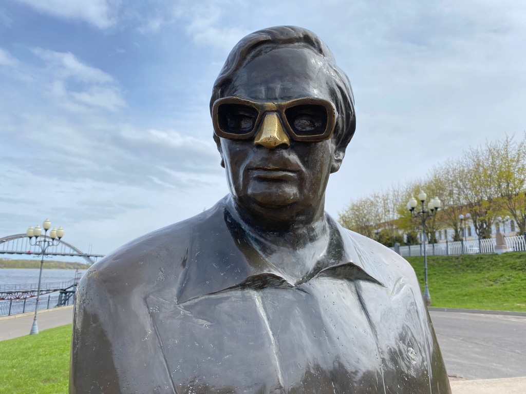 Фильм Леонида Гайдая «12 стульев» снимался в Рыбинске в 1970 году. Сегодня его главного героя Остапа Бендера в виде бронзовой скульптуры можно увидеть на Волжской набережной. Скульптуру установили в 2021 году. Ее прототипом стал артист Арчил Гомиашвили, сыгравший главную роль в фильме. Остап Бендер не один. Рядом с ним мальчик, которого сыграл юный рыбинец.