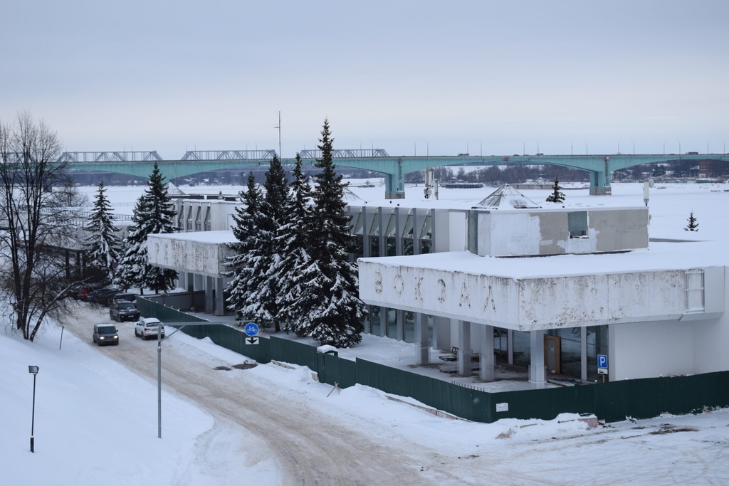Из города к вокзалу ведет Красный съезд. До революции на месте речного вокзала была пристань и товары по Красному съезду везли к судам. В 1820 году через Красный съезд был построен Семеновский мост и Волжская набережная протянулась дальше.