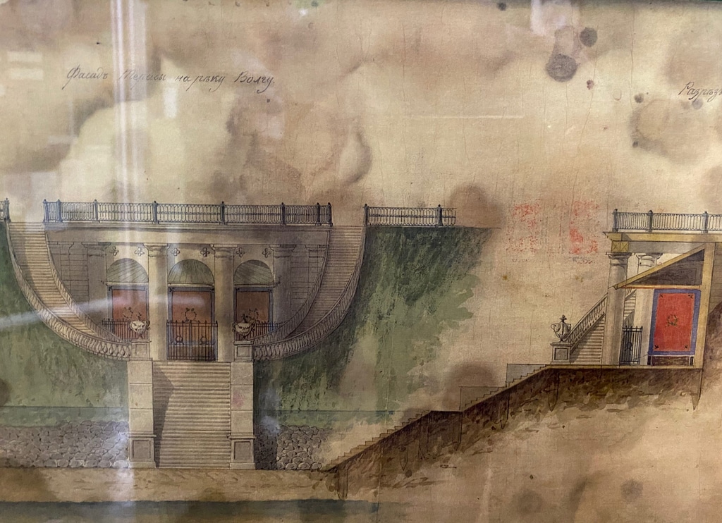 На набережной напротив Дома губернатора в 1849 году была построена полукруглая площадка, под которой было что-то вроде беседки-грота. Из этого грота открывался красивый вид на Волгу. В былые времена здесь стояли диванчики, но сегодня от беседки и диванчиков совсем ничего не осталось.