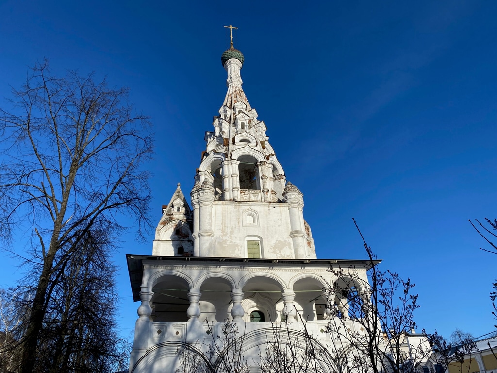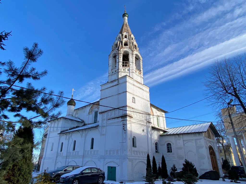 В переулке за музеем возвышается старинная церковь с колокольней.