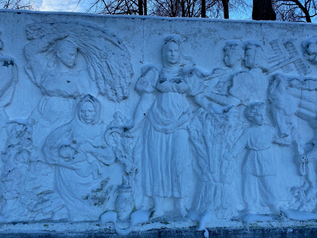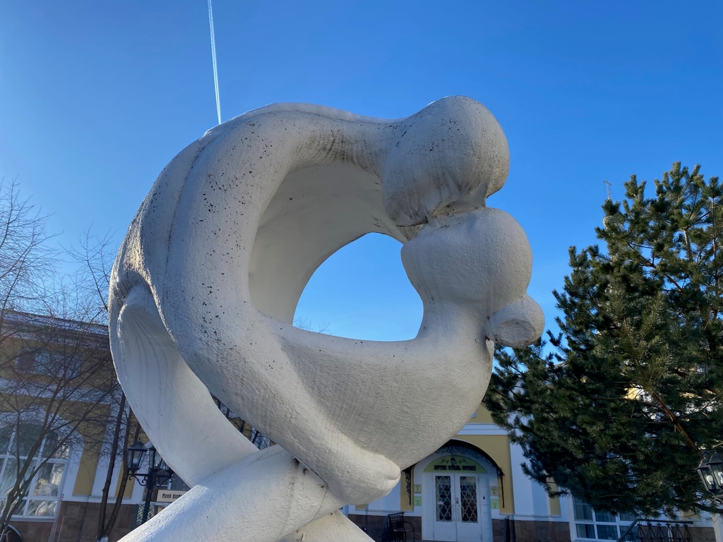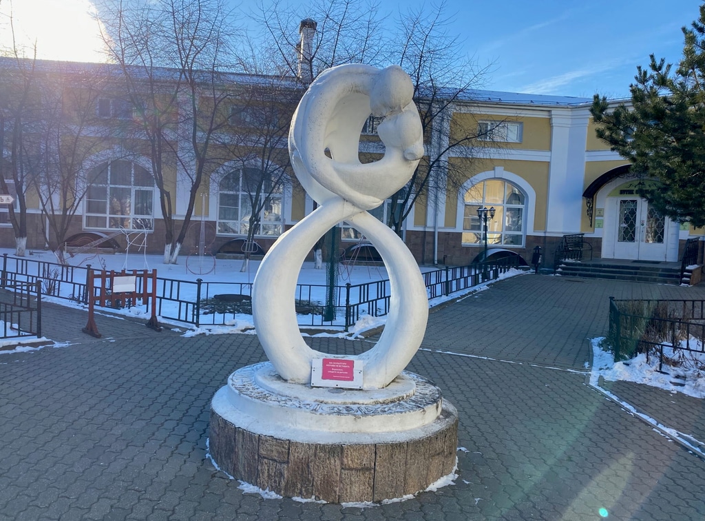 Во дворе дома — необычная скульптура «Вечная любовь». По форме она мне почему-то напомнила восьмерку и ассоциировалась с праздником 8 Марта.