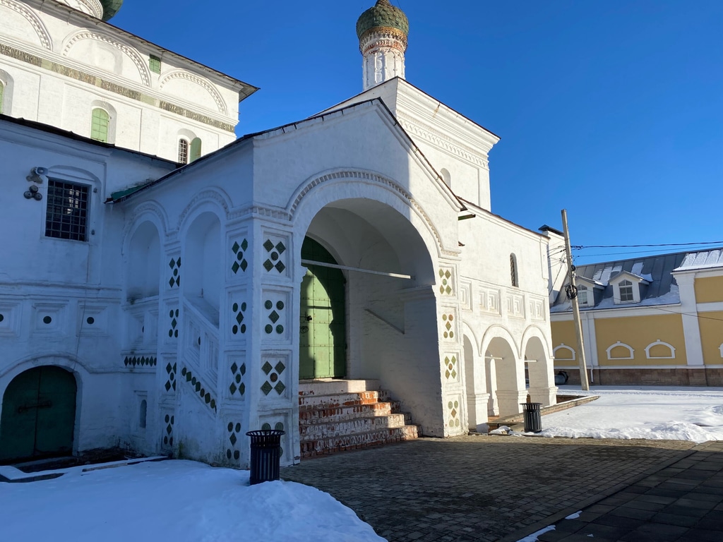 Через несколько лет в 1650-е годы рядом с Рождественской церковью появилась колокольня со Святыми воротами и галереей.