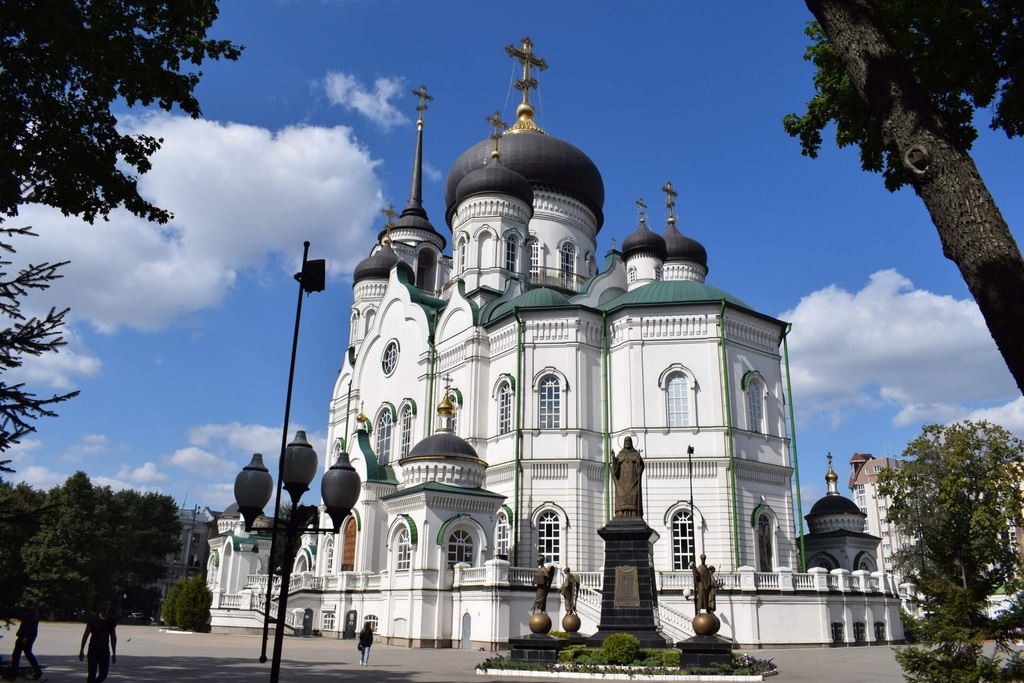 В нескольких шагах от здания управления ЮЖВД по Проспекту Революции находится Первомайский сад с третьим по величине российским православным храмом.