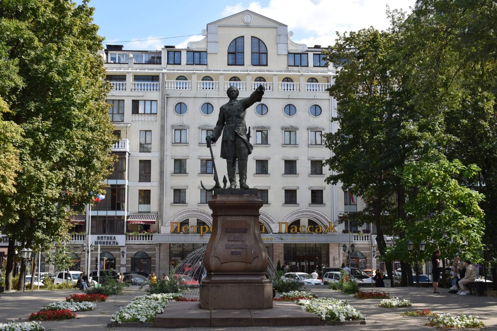 От мемориала рукой подать до Петровского сквера и памятника Петру I.