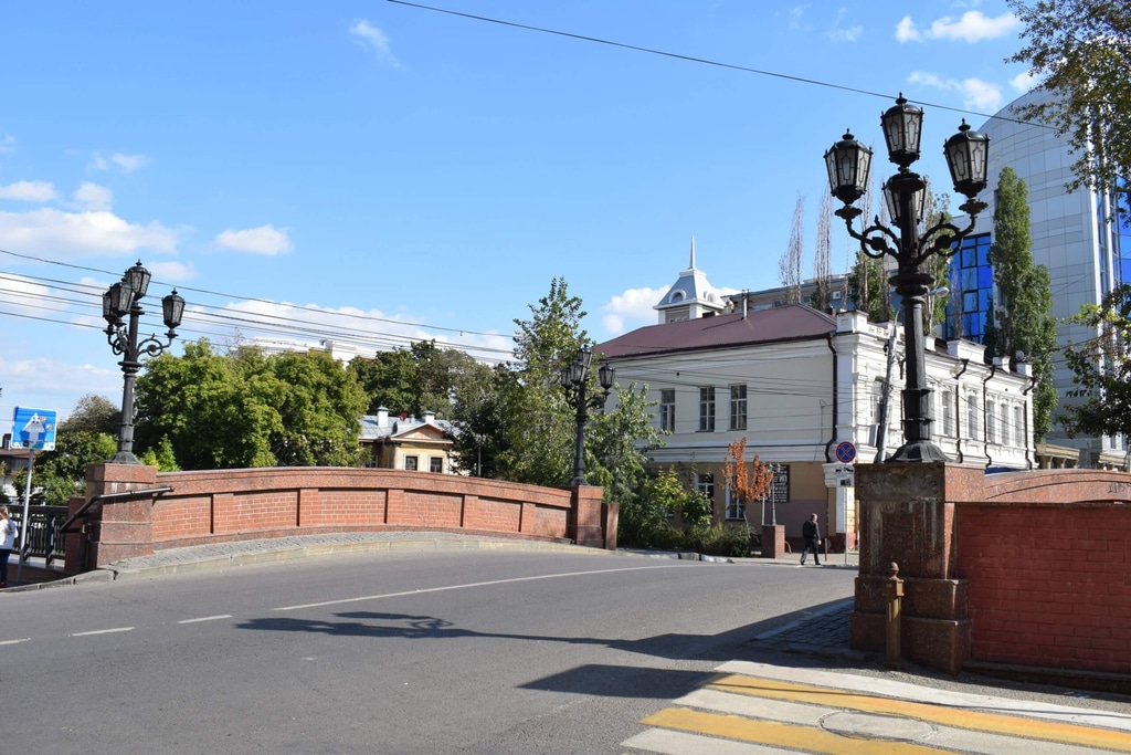 Театр драмы стоит в месте пересечения Проспекта Революции и улицы Карла Маркса. Если по улице Карла Маркса пройтись вниз к реке, то можно увидеть еще одну достопримечательность города — Каменный мост. Он построен в 1826 году и является излюбленным местом для молодоженов. Молодые бьют тут бутылки с шампанским и вешают замочки на удачу.