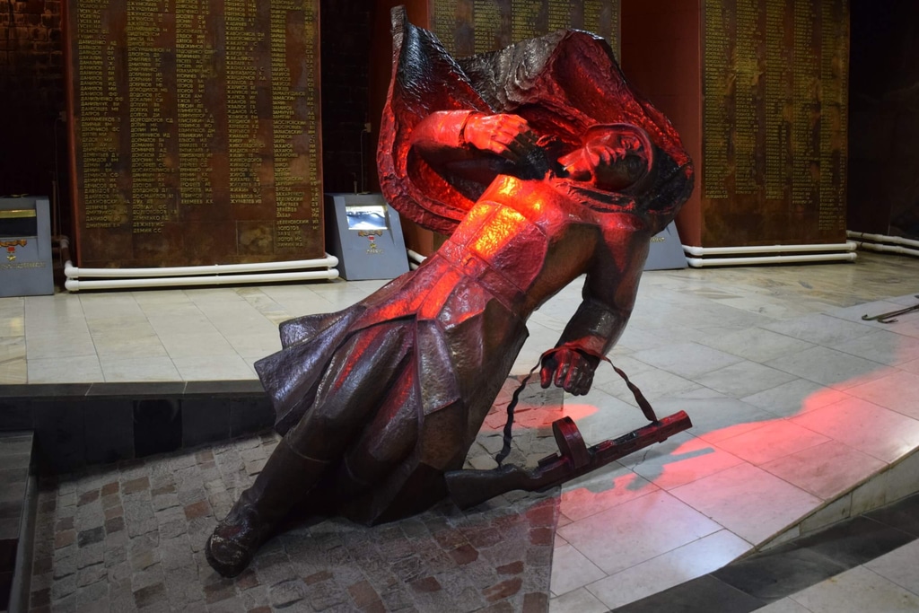 Центральное место в Зале Памяти занимает фигура смертельно раненого истекающего кровью солдата. На стенах — фамилии воинов, погибших на Чижовском плацдарме.