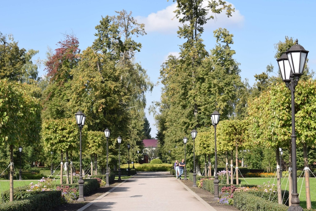 Через ворота входим в парк в английском стиле. Ухожено, красиво, безупречные четкие линии… Парк словно человек после хорошей парикмахерской: волосок к волоску.