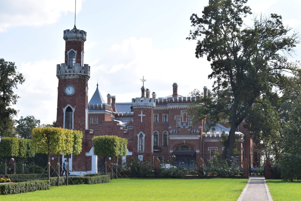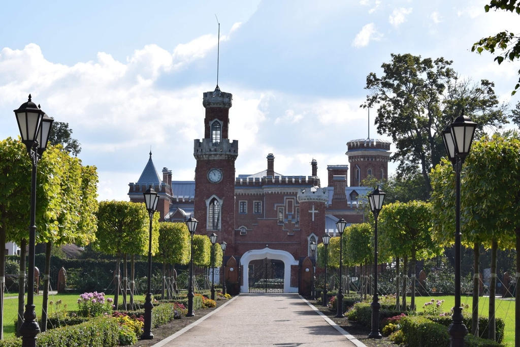 Дворец Ольденбургских построен из красного кирпича в модном для того времени стиле неоготики.