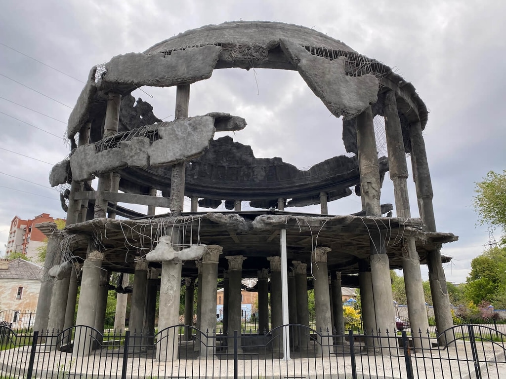 Учебный корпус предназначался для проведения занятий со студентами-медиками. Лечебные корпуса до нас не дошли, а вот ротонда, точнее ее руины сохранились. Городские власти решили ее подновить и законсервировать как памятник Великой Отечественной войне. Консервация ротонды состоялась совсем недавно в 2020 году.
