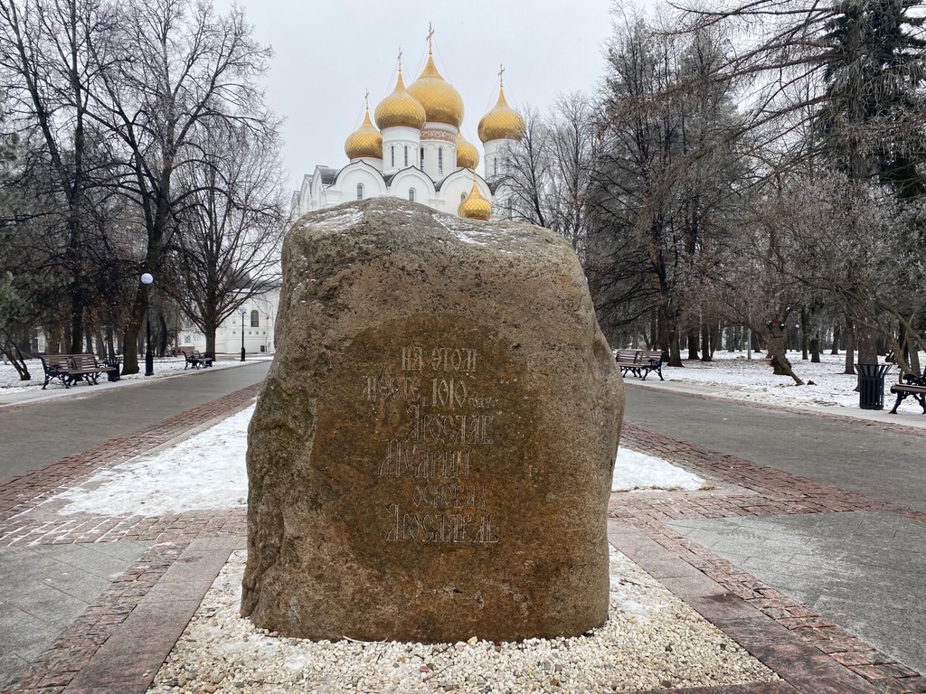 Чуть дальше, ближе к Волге, находится еще один любопытный объект — Камень основания Ярославля. Этот большой серо-бурый валун обозначает место, где Ярослав Мудрый повелел заложить город Ярославль.