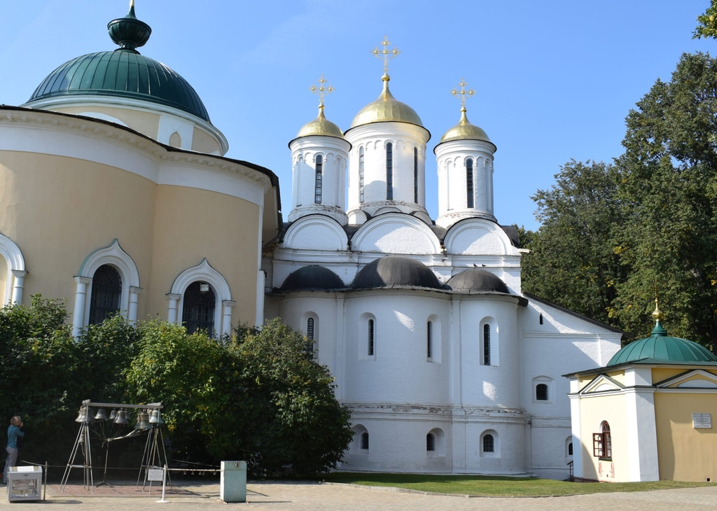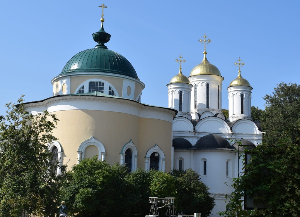 Воскресенскую церковь можно определить по полукруглым апсидам, где находится алтарь.
